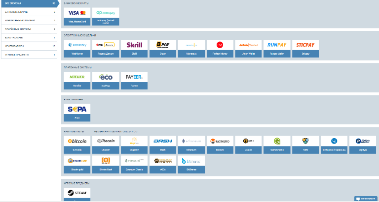 - Банковские карты (включая виртуальные, кредитные и дебетовые);